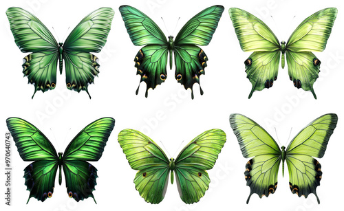 Fototapeta premium Green and yellow butterflies collection isolated on transparent background