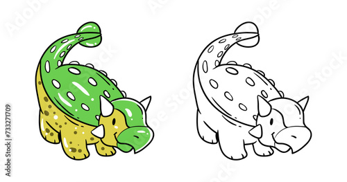 Naklejka premium Green and yellow dinosaur element with sketch vector illustration