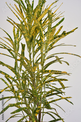 © Raksha Shelare, Obraz premium Green and yellow houseplant for decoration isolated on white.