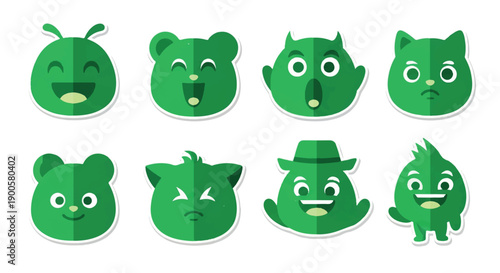 © Pandaman1102, Obraz premium Green animal faces with transparent background