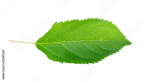 Obraz premium Green apple leaf isolated on white background, clipping path