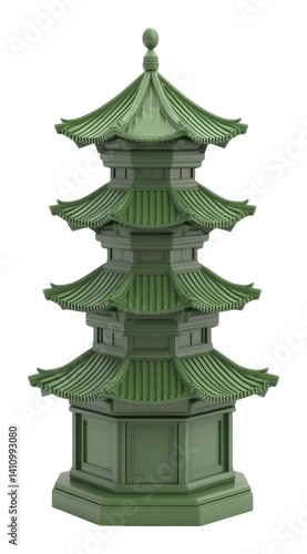 © Oksi, Fototapeta premium Green architectural pagoda model with intricate details and domed roof design. Cultural heritage and architecture concept