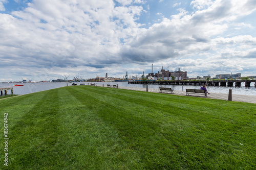 Fototapeta premium Green Area of Bond Street Warf, in Baltimore, Maryland