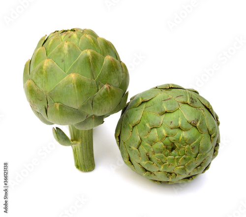 © ImagesMy, Fototapeta premium Green artichoke on white background