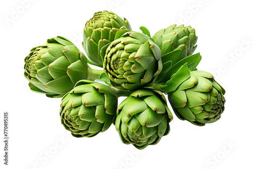 © Usama, Obraz premium Green Artichokes Bunched Together on White Background. On a White or Clear Surface PNG Transparent Background.