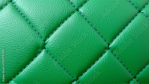 © Roman, Fototapeta premium Green artificial leather surface texture, stitched in the form of rhombuses, squares, rectangles. Quilted eco-leather.
