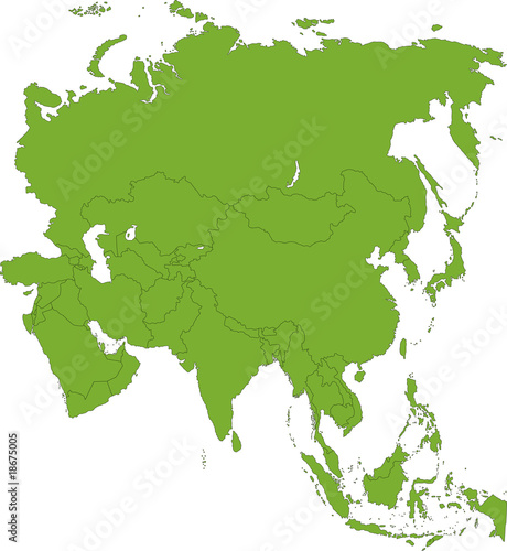 Fototapeta premium Green Asia map with country borders
