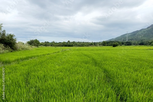 Obraz premium green Asian rice fields in Asia, Vietnam