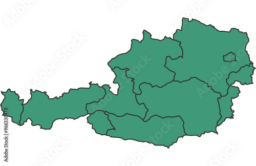 © Jayartiez, Obraz premium Green Austria simple map with states border outline vector