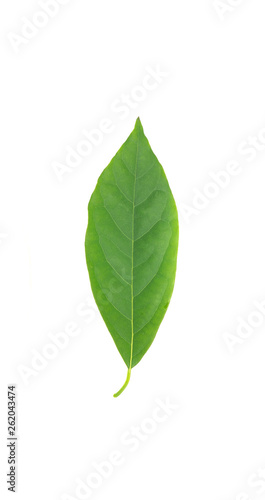 © boomerang11, Obraz premium Green avocado leaf isolated over white