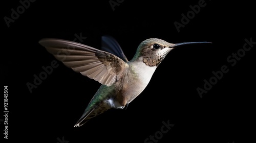 © Rere_Art151, Fototapeta premium Green-backed Hummingbird in Flight Against a Black Background