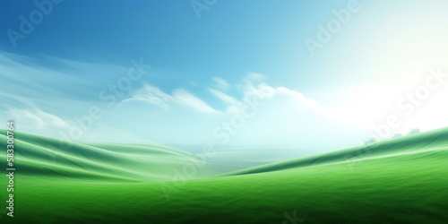 © dhimage, Obraz premium Green background illustration with mountains and fields