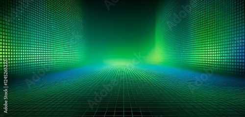 © qonya, Obraz premium Green background image, light, space, future, cyber, digital texture banner