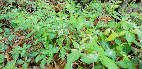 Fototapeta premium Green background of the ground cover plants. leaves texture. Top view. Natural green concept, Grass texture. Abstract background.