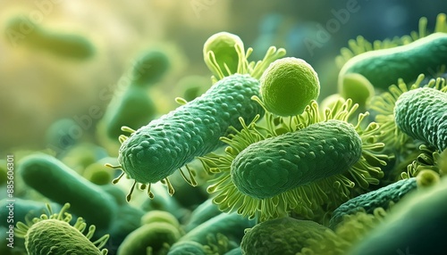 © Verdiana, Fototapeta premium Green bacteria against a blurred background