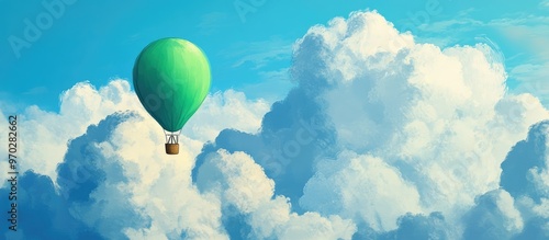 Fototapeta premium Green balloon basket soaring through fluffy clouds