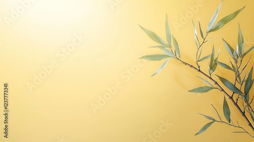 Naklejka premium Green Bamboo Branch on Yellow Gold Background