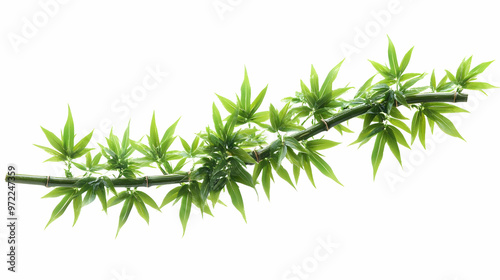 Fototapeta premium Green Bamboo Branch with Lush Leaves Isolated on White Background