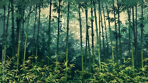 © jinzhen, Obraz premium green bamboo forest plants pattern illustration poster background