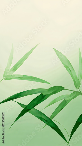 © swapan, Obraz premium Green bamboo leaves on a fresh natural background