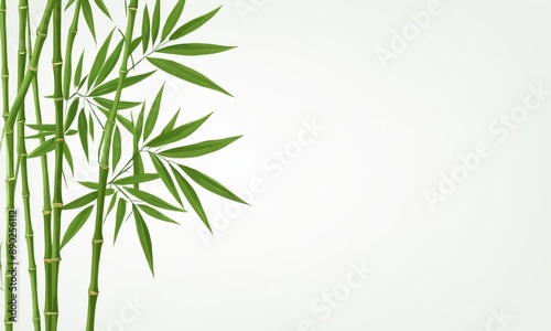 © Dmitriy K., Naklejka premium Green bamboo stalks with leaves on a white background