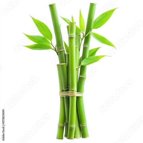 © ANILCHANDRO, Obraz premium Green bamboo stems with leaves, cut out isolated on white a background