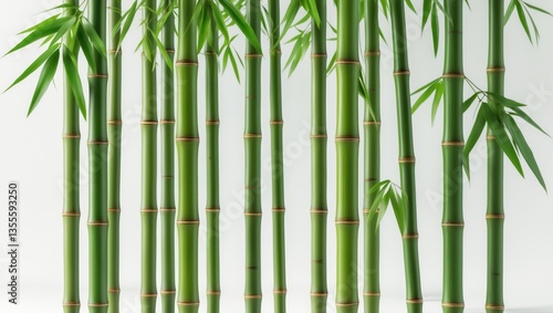 © AbstractAI, Fototapeta premium Green bamboo with leaves separated against a white background