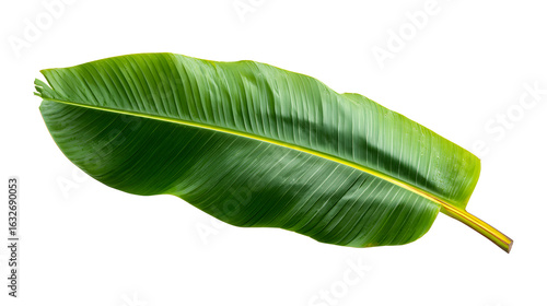 Fototapeta premium Green banana palm tropical leaf isolated on transparent background