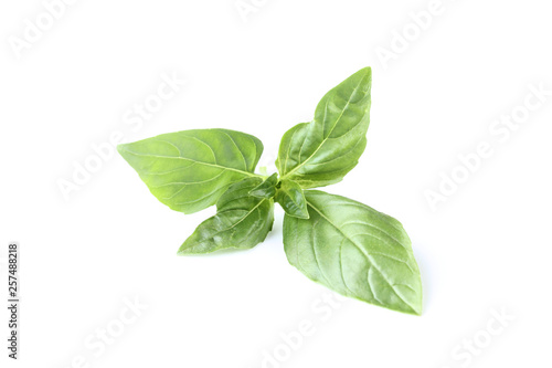 © 5second, Obraz premium Green basil leafs isolated on white background