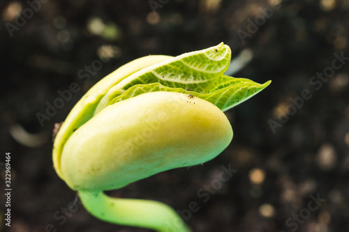Obraz premium Green bean seedling is growing. Macro shot with shalow dof.