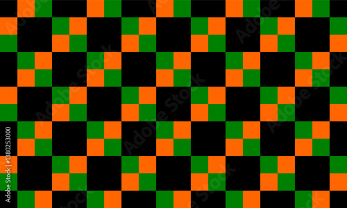 Fototapeta premium green, black, orange checkered tablecloth, yellow square block pattern checkerboard style, replete image design for fabric printing