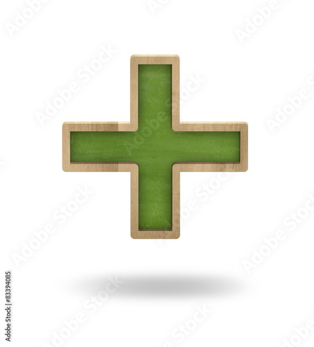 © Tuomas Kujansuu, Fototapeta premium Green blank plus sign shape blackboard