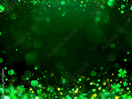 © Siasart Stock, Obraz premium Green Bokeh Background with Floating Shamrocks Creates a Magical and Enchanting Atmosphere