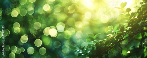 Fototapeta premium Green Bokeh Background with Sunlit Leaves