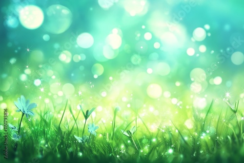 © GlopHetr, Fototapeta premium Green bokeh light blurs background.