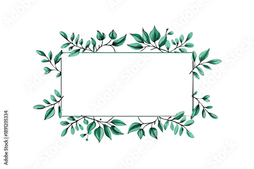 © Olga, Obraz premium Green Botanical Rectangular Frame with Dense Leaves