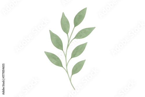 © Michael, Fototapeta premium Green botanical sprig watercolor illustration. Delicate leaf branch art on transparent background