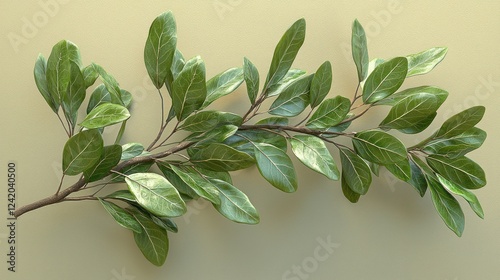 Naklejka premium Green branch, leaves, studio, pastel background, nature design