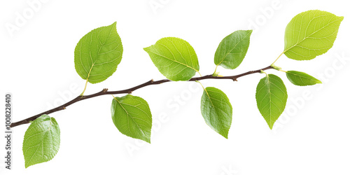 Fototapeta premium Green Branch with Leaves Isolated on Transparent Background
