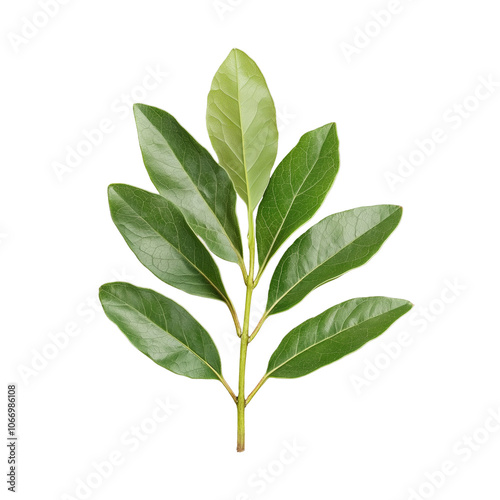 © ZeyBer, Fototapeta premium Green branch with multiple leaves in realistic 3D on transparent background