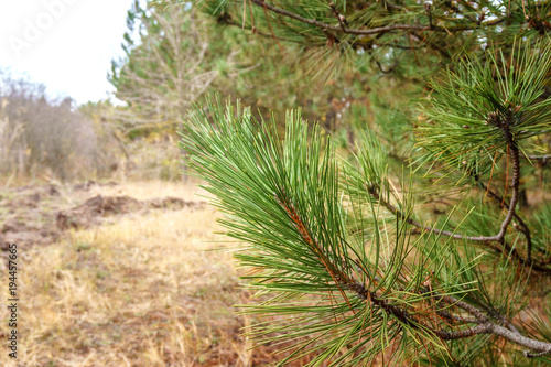 © Sergey, Fototapeta premium green branches with pine needles in the forest