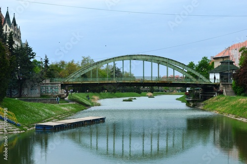 © oljasimovic, Obraz premium green bridge and its reflection in the river