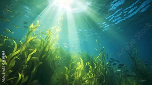 © Derby, Fototapeta premium Green bright algae growing underwater