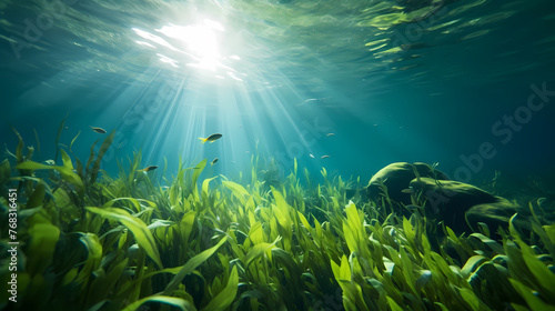 © Derby, Fototapeta premium Green bright algae growing underwater