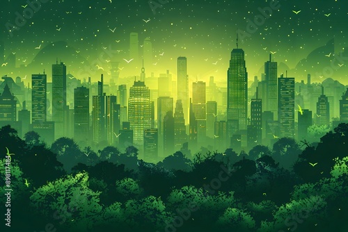 © THE IZEL ART, Fototapeta premium green buildings cityscape with renewable energy. green economy and sustainable development, green energy