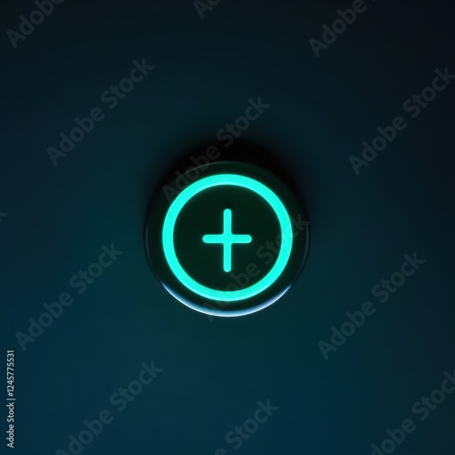 © SweetCommercial, Obraz premium Green button with a plus sign on it