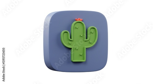 Obraz premium Green Cactus on Blue Square 3d Illustration Desert Plant Icon