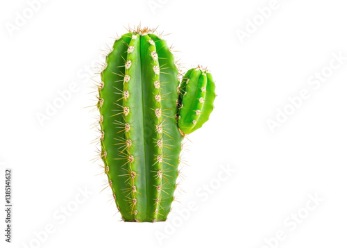 © Bismillah, Naklejka premium Green cactus with a small offshoot, isolated on white. Concept of desert plants, succulents, and nature.