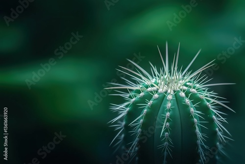 © michnik101, Fototapeta premium Green cactus with long white thorns on dark background. botanical education