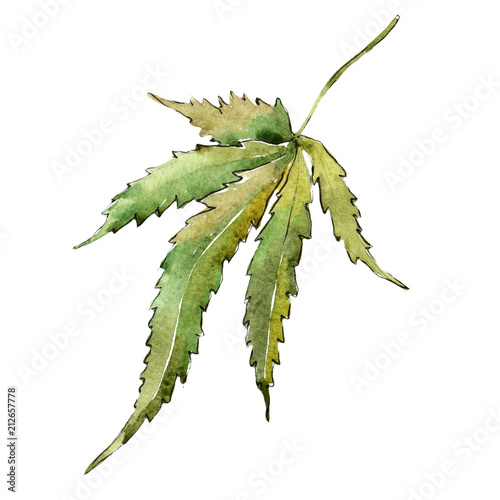 Naklejka premium Green cannabis leaves in a watercolor style isolated. Aquarelle leaf for...